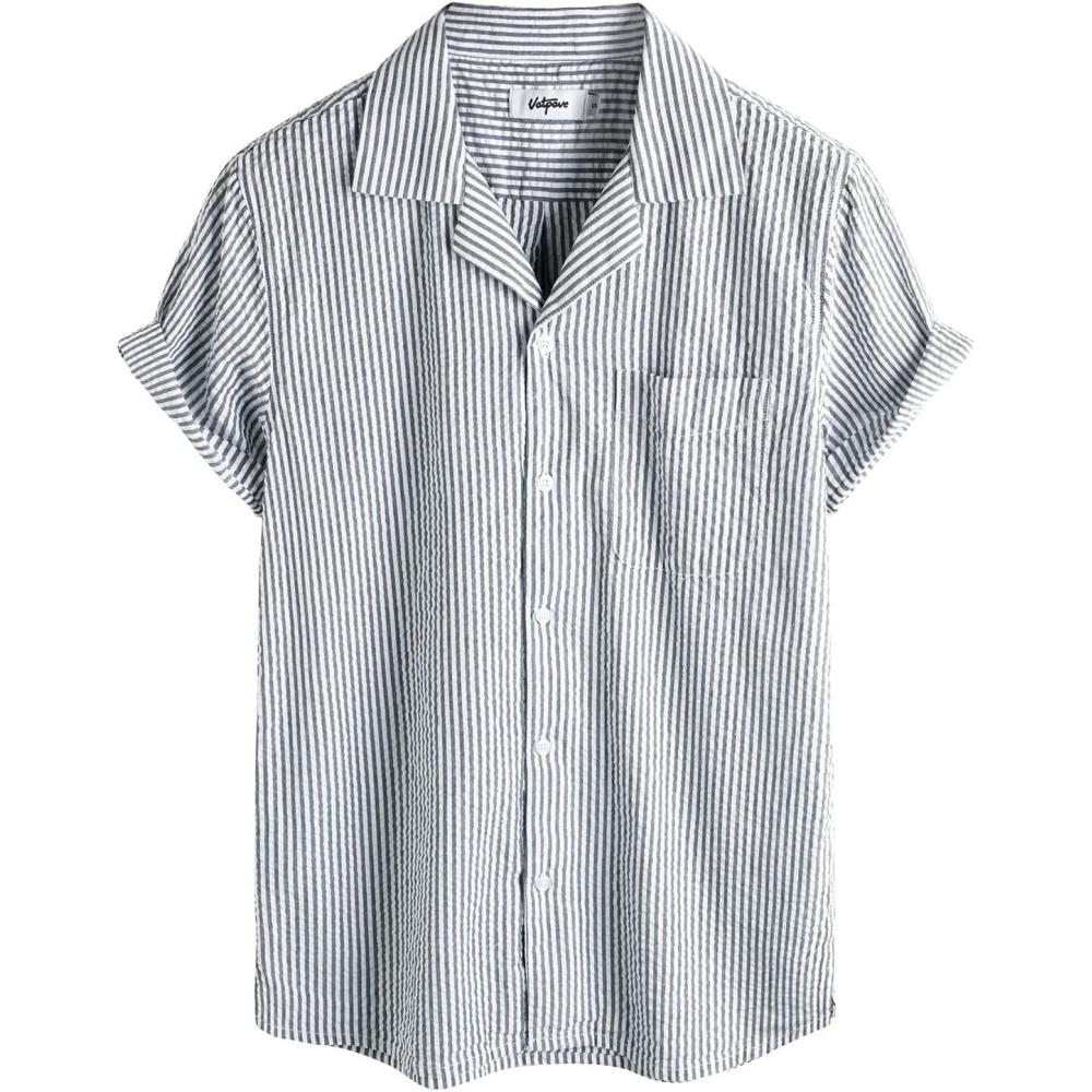 VATPAVE Mens Striped Summer Shirt Casual Button Down Short Sleeve Beach Shirts Cotton Shirts for Men(Multicolor)