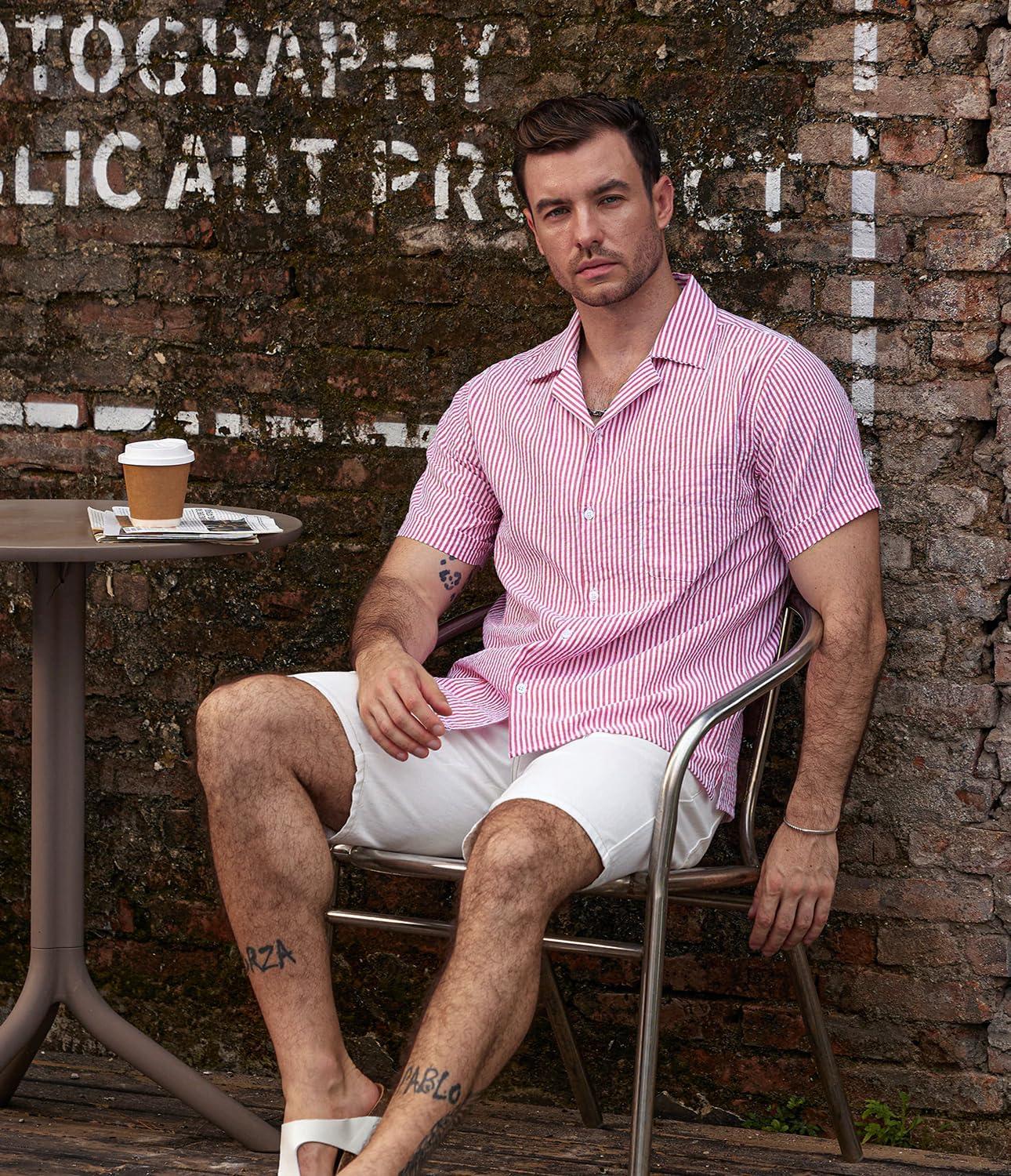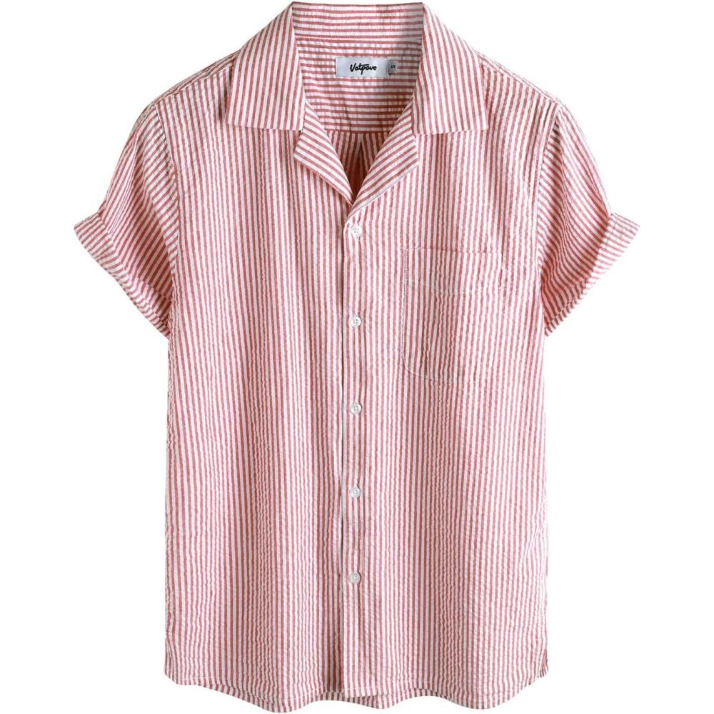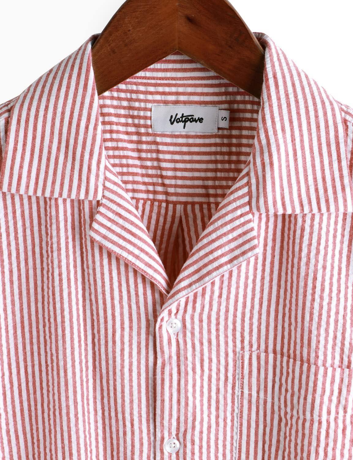VATPAVE Mens Striped Summer Shirt Casual Button Down Short Sleeve Beach Shirts Cotton Shirts for Men(Red)