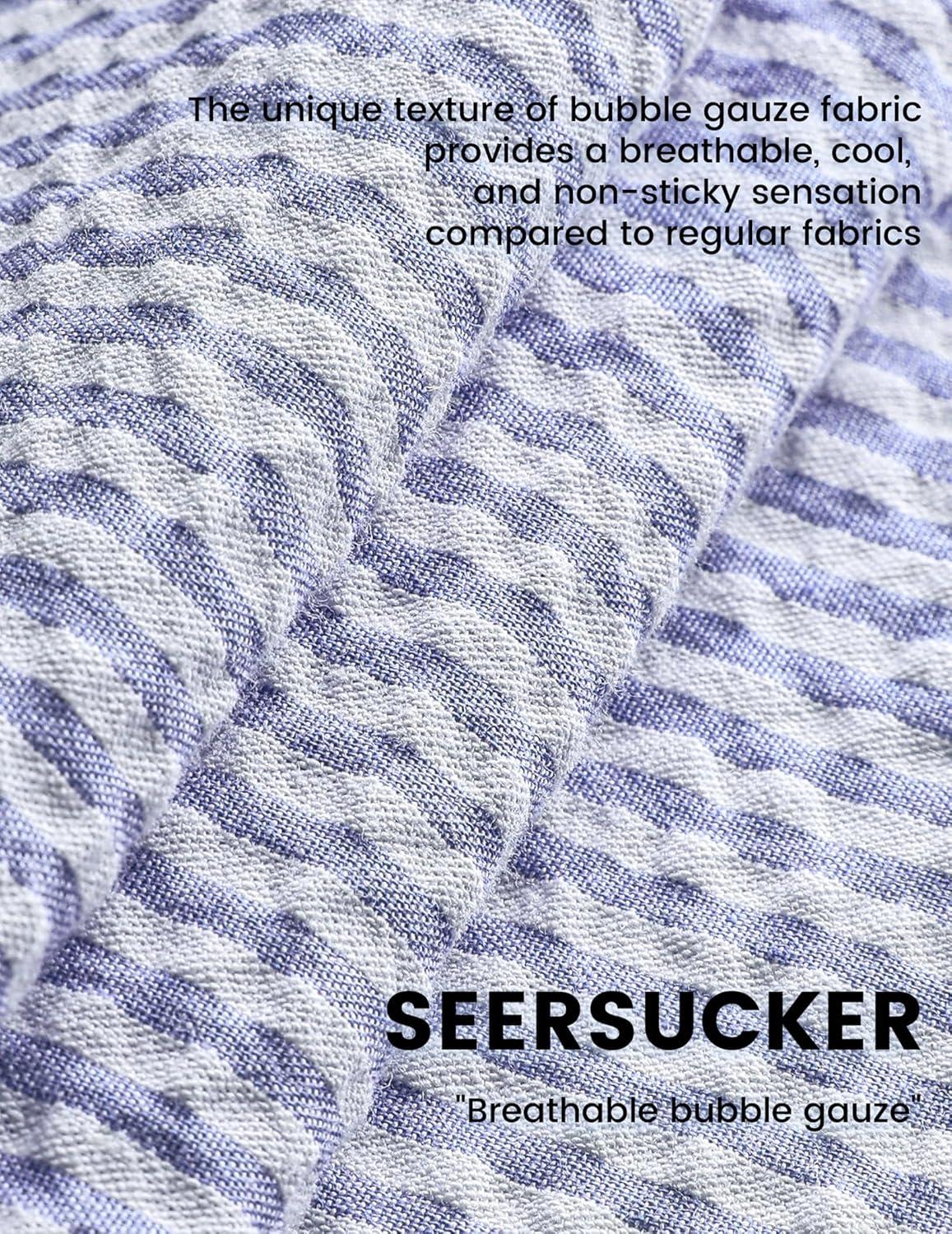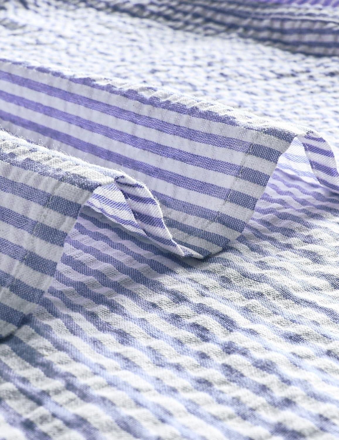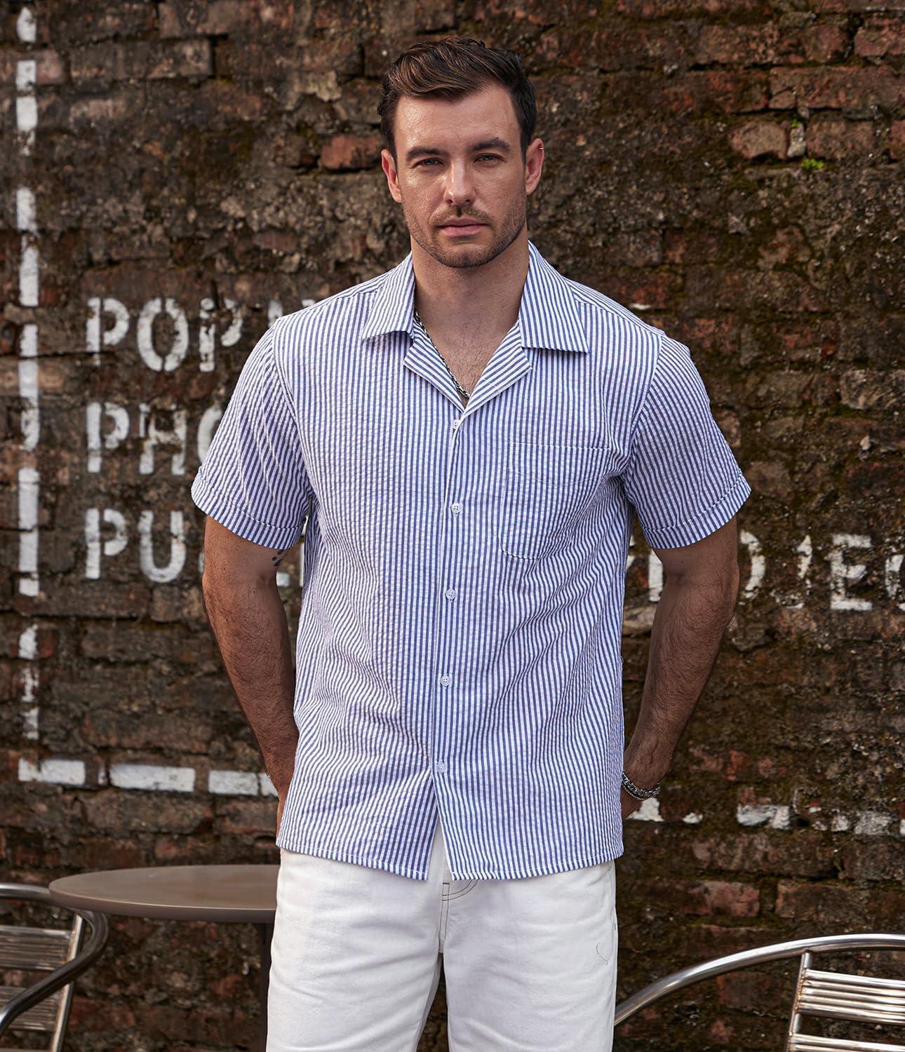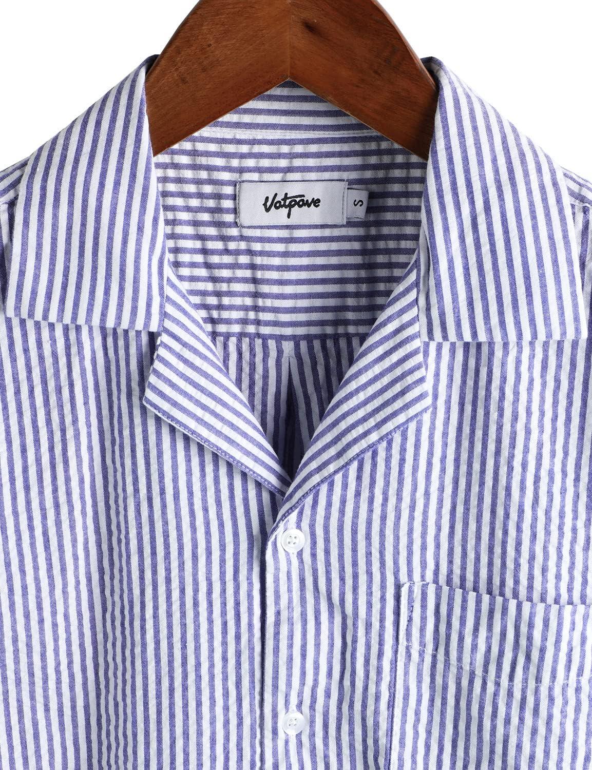 VATPAVE Mens Striped Summer Shirt Casual Button Down Short Sleeve Beach Shirts Cotton Shirts for Men(Royalblue Navy)