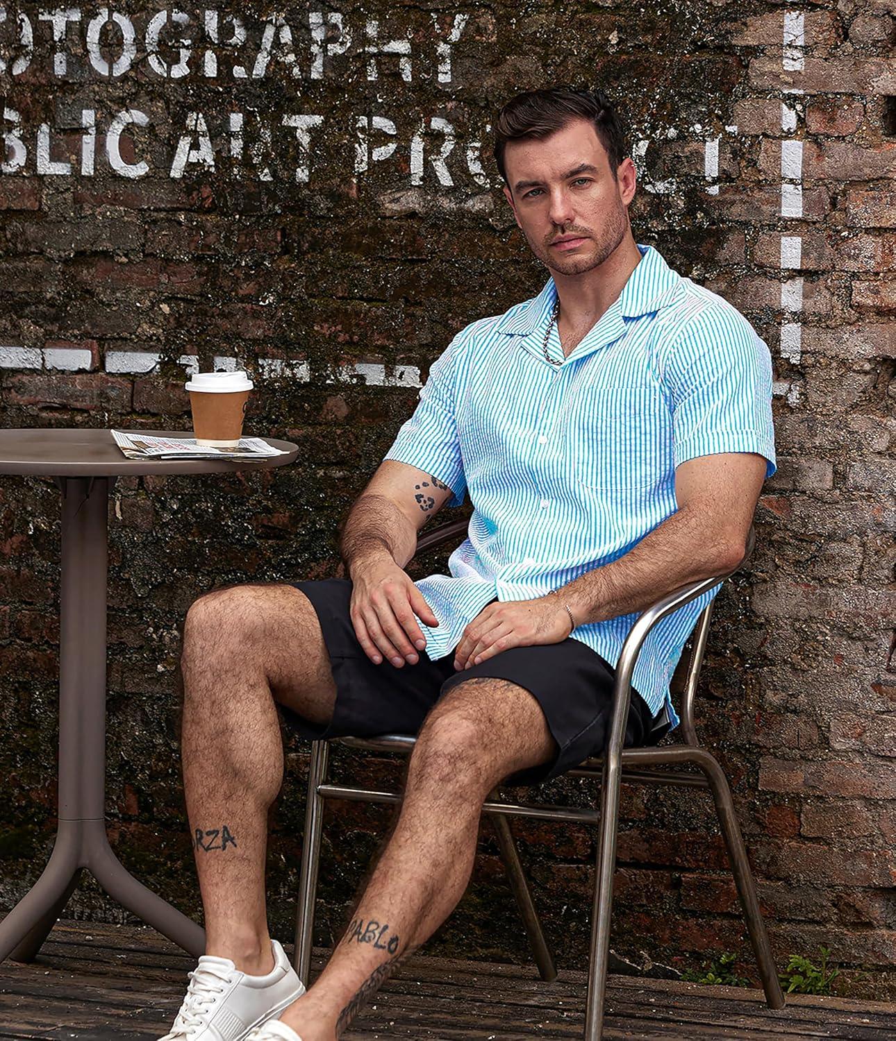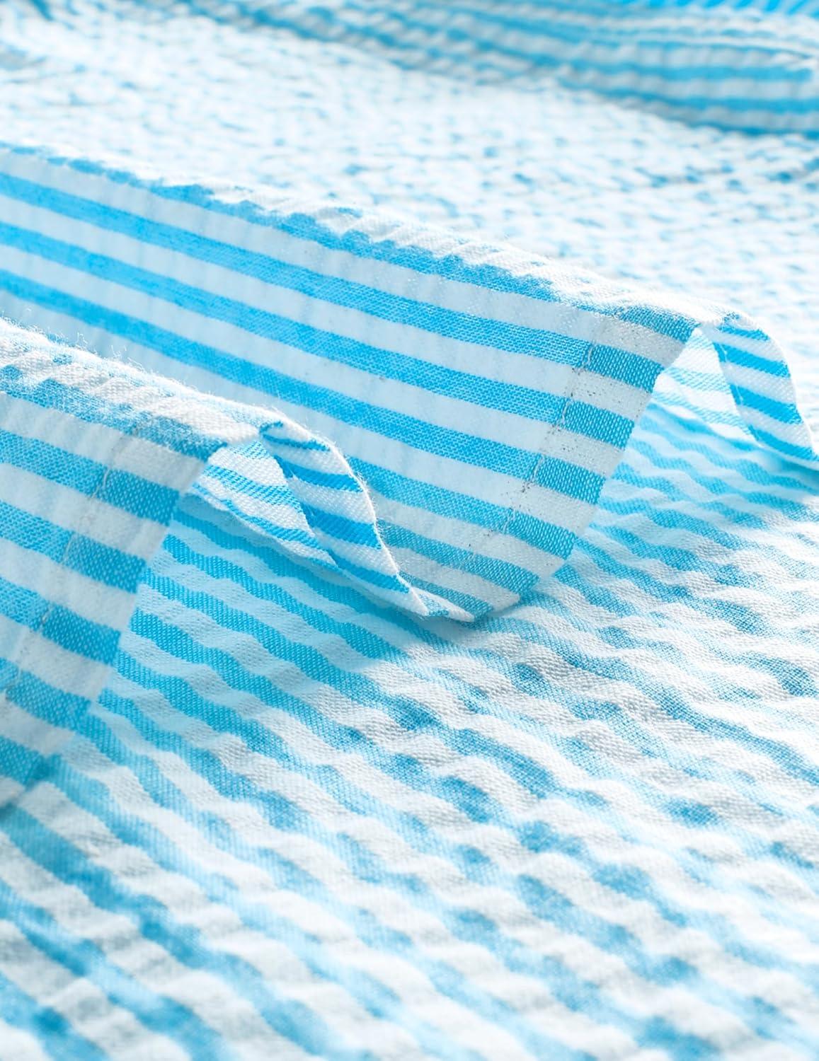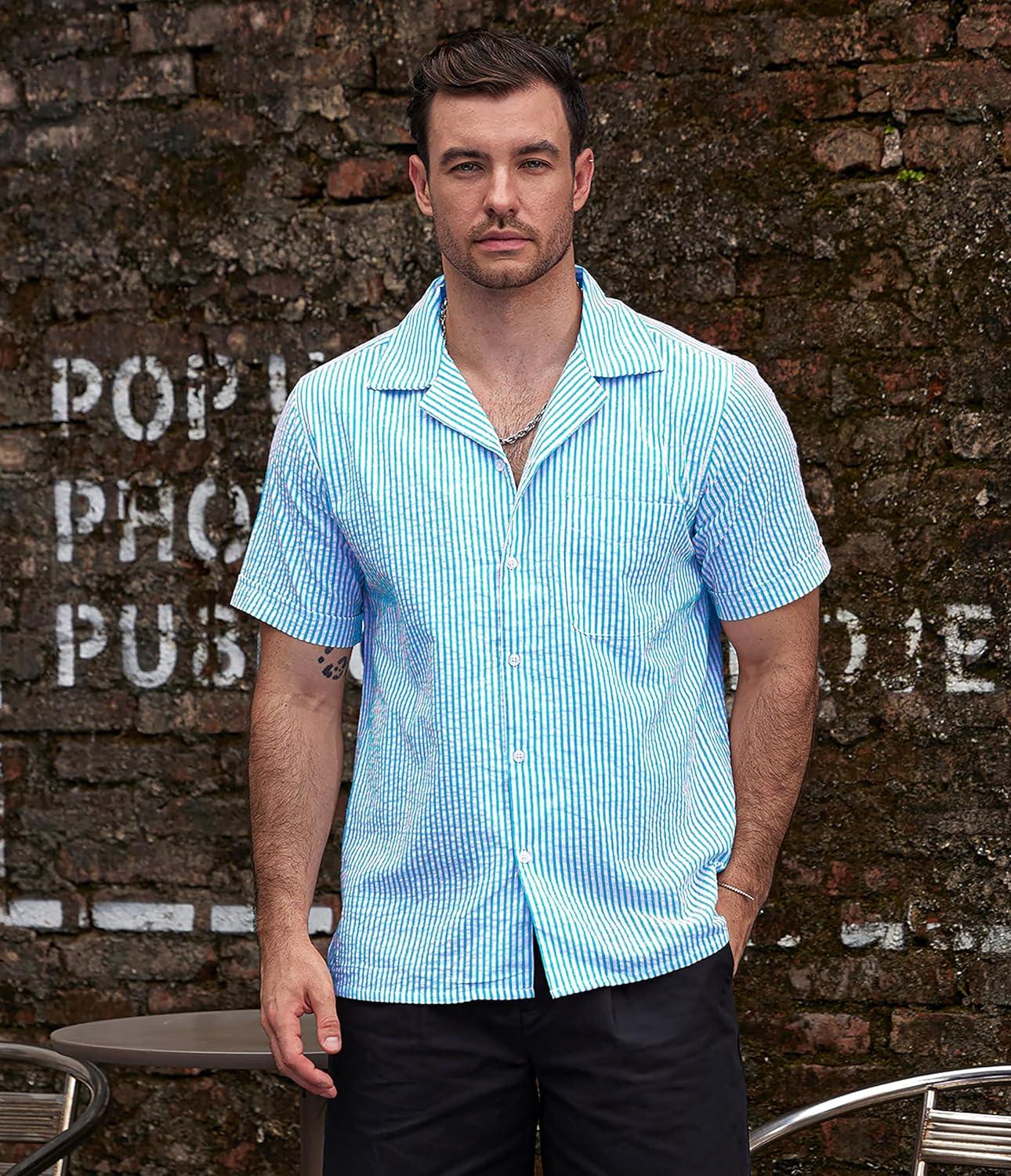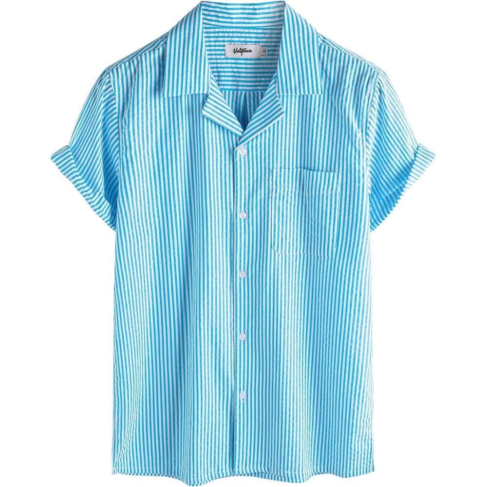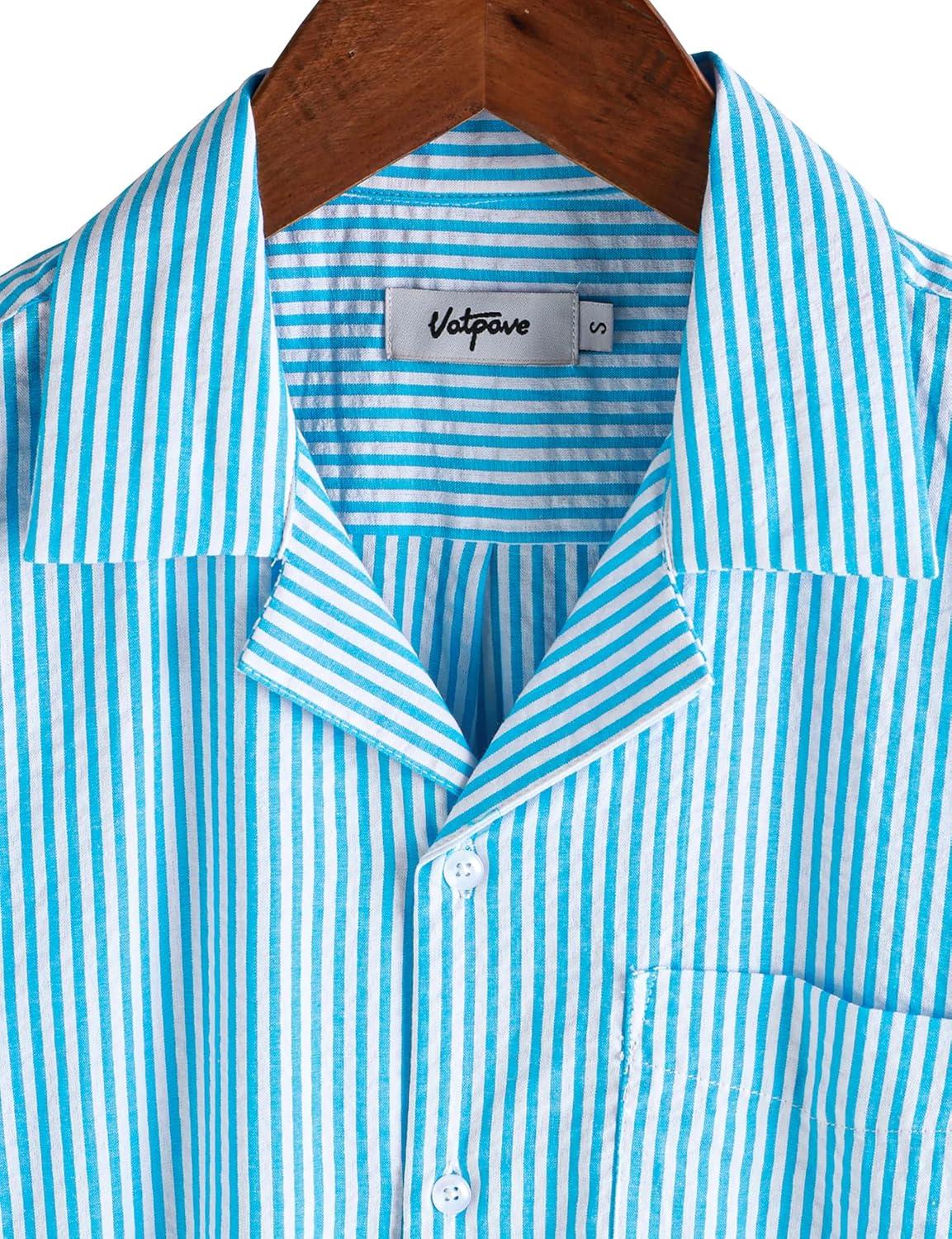 VATPAVE Mens Striped Summer Shirt Casual Button Down Short Sleeve Beach Shirts Cotton Shirts for Men(Sky Blue)